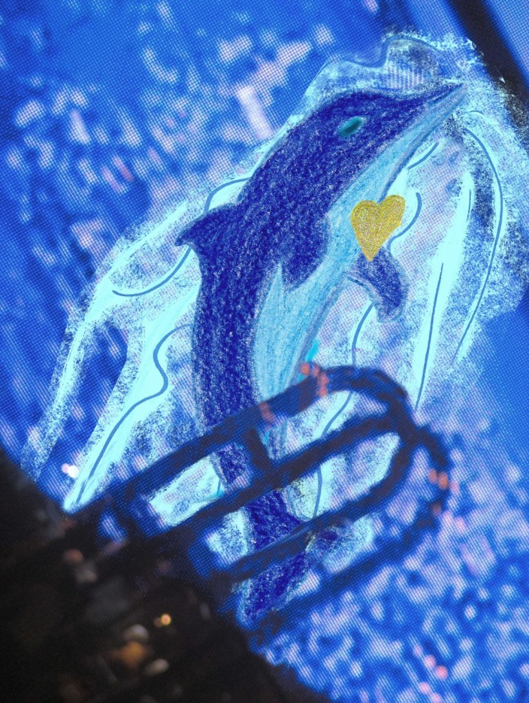 Elles accentuent le mouvement, comme si le dauphin se frayait un chemin hors d’un courant figé ou d’un espace restreint. Ce halo d’énergie suggère une poussée vitale, une impulsion pour bouger.
