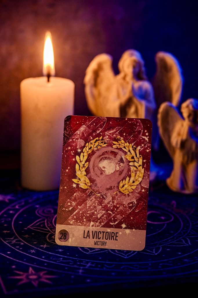 En résumé, La Victoire (26) est la carte de la réussite après l’épreuve, du triomphe intérieur et extérieur, et de la reconnaissance méritée. Elle est une invitation à célébrer et à vous accorder la fierté de votre chemin, car chaque victoire personnelle participe à une victoire universelle.